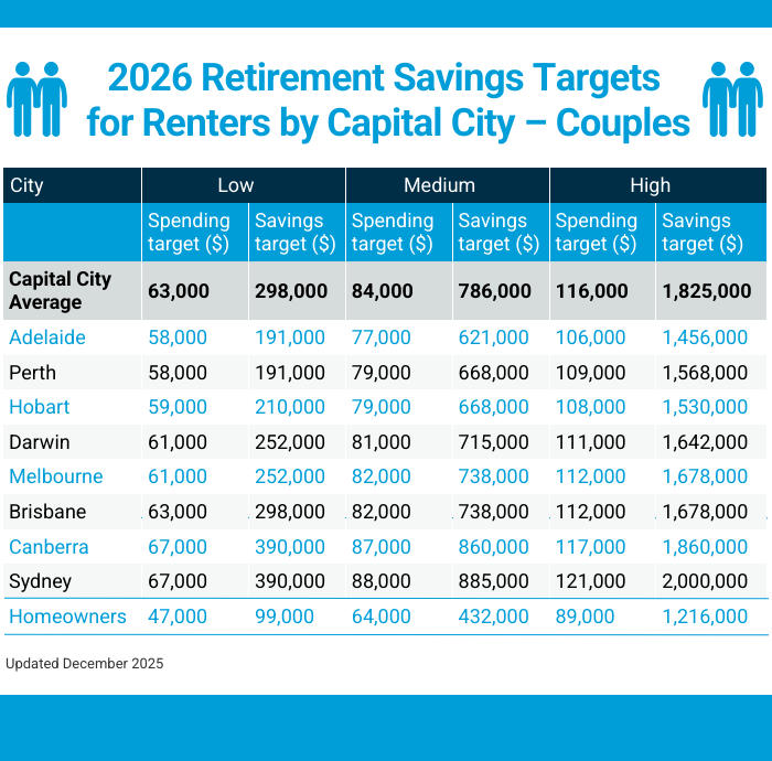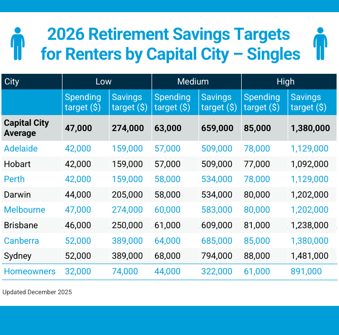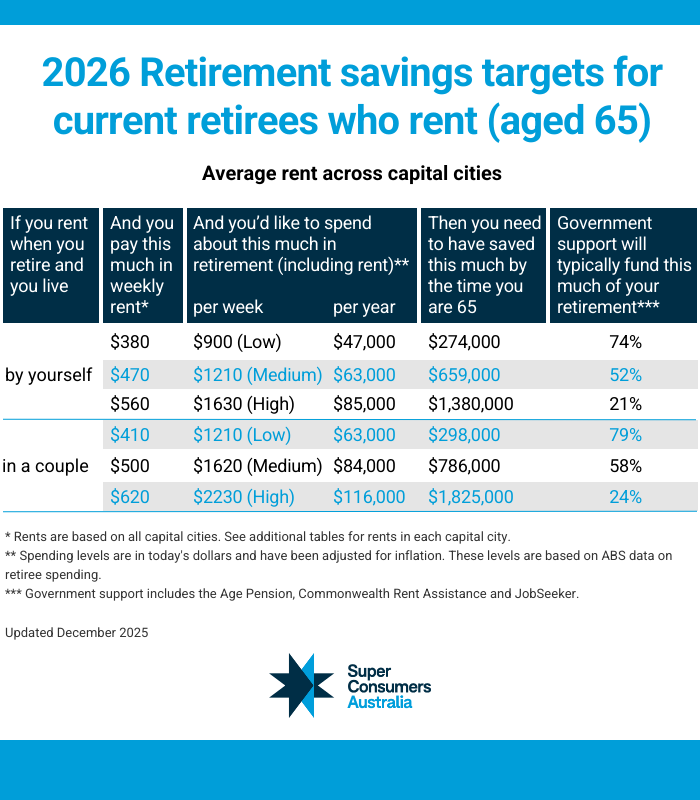 The 2026 retirement savings targets for renters show how much super you’ll need to sustain your desired standard of living until age 90.